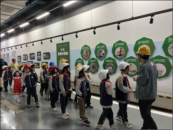 全地埋設計不僅將污水處理構筑物全部隱藏于地下,更通過密閉空間對設備噪聲進行收集處理,對臭氣實施100%集中凈化,徹底打破了“污水處理廠=臟臭源”的固有認知。 更令人欣喜的是,這座綠色工廠已成為傳播生態文明理念的重要載體。作為合肥市生態環境教育基地,胡大郢凈水廠每年舉辦超過20場“節水課堂進校園”活動,把“一滴污水的低碳之旅”故事送進十余所中小學。孩子們通過樂高模型模擬污水處理流程,在寓教于樂中種下綠色發展的種子。 在胡大郢凈水廠“國企開放日”活動中,孩子們戴著安全帽穿越地下處理車間,直觀見證污水處理的“碳足跡消弭”過程。“污水變清水的旅程,也是碳減排的旅程。”稚嫩的聲音里,飽含著對未來綠色生活的向往。 從地下到地上,從治理到教育,胡大郢凈水廠以創新的立體布局、先進的環保技術、生動的科普實踐,走出了一條生態優先、綠色發展的新路徑。它不僅是環巢湖生態保護的一張“活名片”,更是新時代城市與自然和諧共生的生動注腳。在這片曾經可能被視為“邊緣地帶”的土地上,正在上演一場關于綠色轉型、空間重構與生態文明的時代敘事。