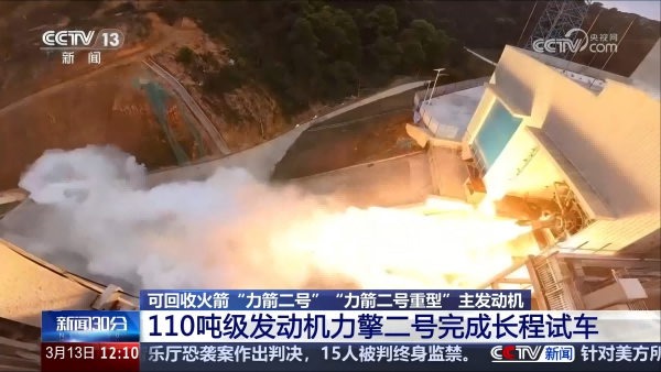 3月13日,CCTV13《新聞30分》報(bào)道了中科宇航自主研制的110噸級(jí)力擎二號(hào)針?biāo)ㄊ揭貉趺河桶l(fā)動(dòng)機(jī)完成長程試車情況。中國節(jié)能下屬中國啟源所屬新時(shí)代(西安)設(shè)計(jì)研究院有限公司承擔(dān)了該火箭發(fā)動(dòng)機(jī)試車臺(tái)的設(shè)計(jì)任務(wù)。