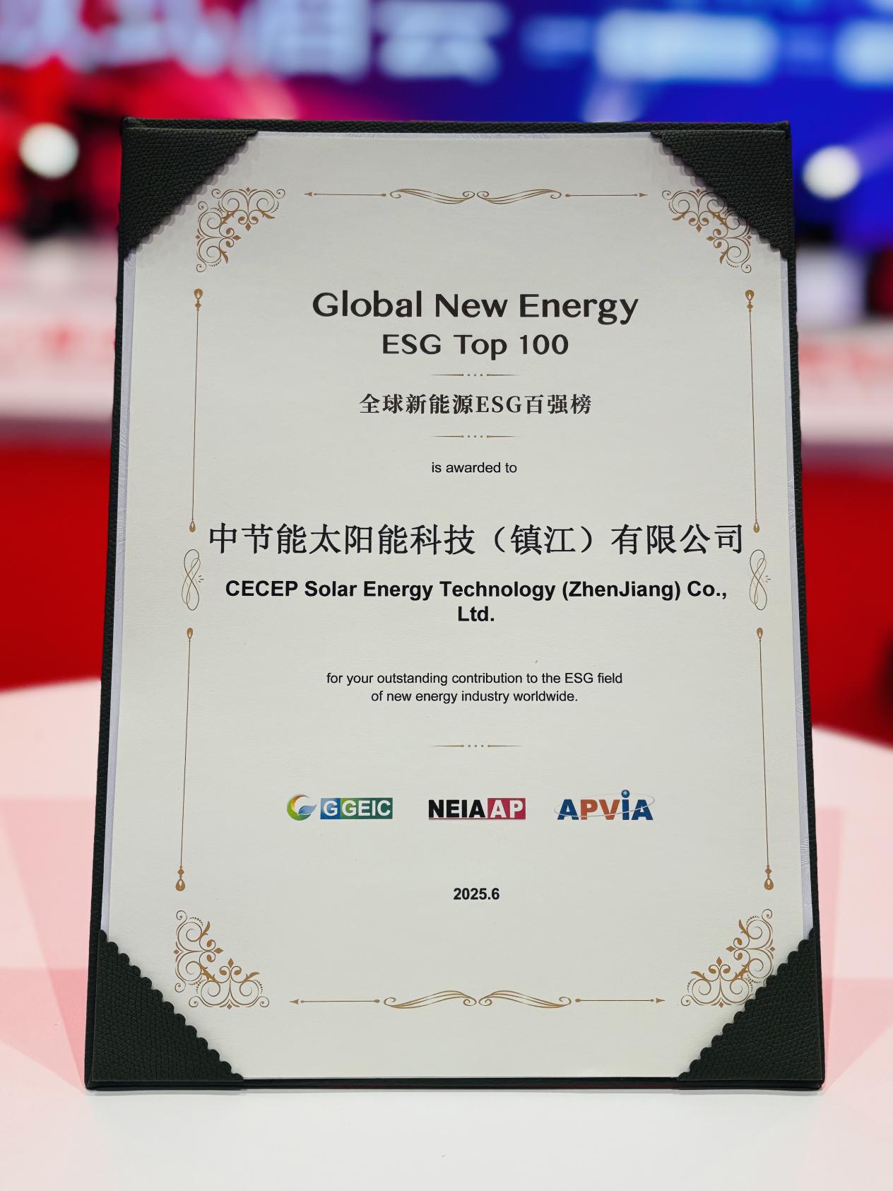 近日,在上海舉行的第十八屆SNEC光伏展期間,太陽能鎮(zhèn)江公司憑借在環(huán)境、社會及治理領(lǐng)域的扎實實踐與積極成效,成功入選“Global New Energy ESG Top 100全球新能源ESG百強(qiáng)榜”,其可持續(xù)發(fā)展努力獲得國際權(quán)威機(jī)構(gòu)高度認(rèn)可。