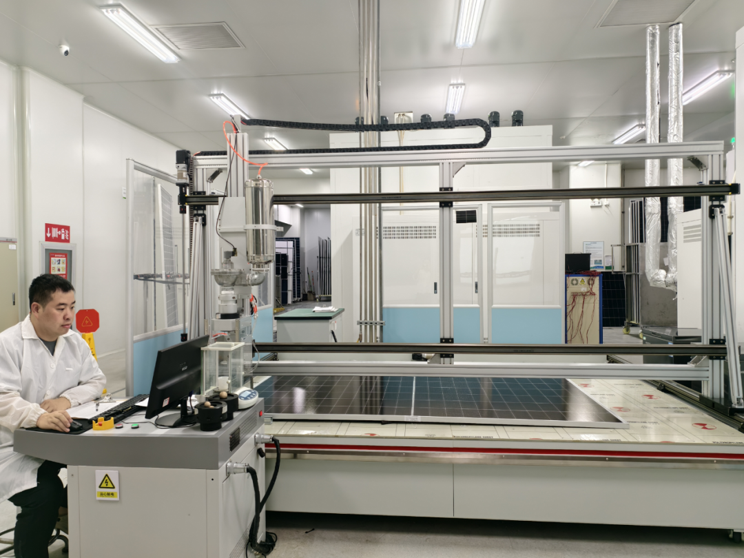 太陽能鎮江公司檢測人員正在進行組件量產產品冰雹測試
