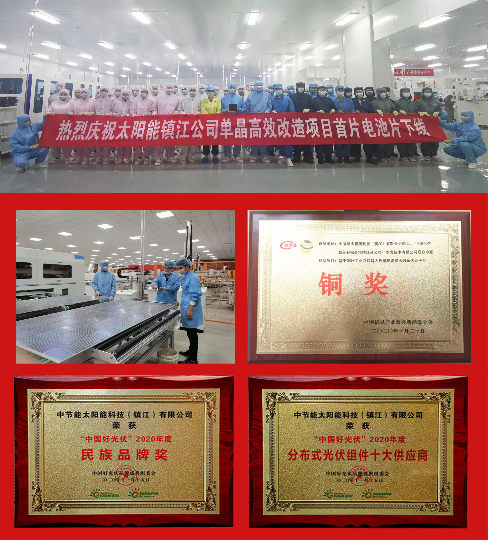 太陽能鎮(zhèn)江公司黨總支全面開啟“保質(zhì)量、促生產(chǎn),奮戰(zhàn)70天”專項提升行動,積極推進混改和擴產(chǎn)項目,電池一車間技改后已全面量產(chǎn);句容基地夜班首次突破單線1000塊,提前完成達產(chǎn)目標(biāo)。11月15日,憑借優(yōu)秀的技術(shù)創(chuàng)新能力和品牌影響力,鎮(zhèn)江公司斬獲2020年度中國好光伏“民族品牌獎”“、分布式光伏組件十大供應(yīng)商”兩項大獎;同日,鎮(zhèn)江公司《基于5G+工業(yè)互聯(lián)網(wǎng)大數(shù)據(jù)集成技術(shù)的光伏云平臺》項目獲得“首屆信息產(chǎn)業(yè)兼容系統(tǒng)創(chuàng)新應(yīng)用大賽新能源專項賽”銅獎。 凝心聚力展作為,提質(zhì)增效譜新篇。太陽能公司黨委將持續(xù)深化提質(zhì)增效專項行動,以“大干苦干、巧干實干”的精神,攻堅克難、勇挑重擔(dān)、開拓創(chuàng)新,全力以赴完成年度目標(biāo)任務(wù),為集團公司“十三五”圓滿收官和“十四五”良好開局作貢獻。 |
